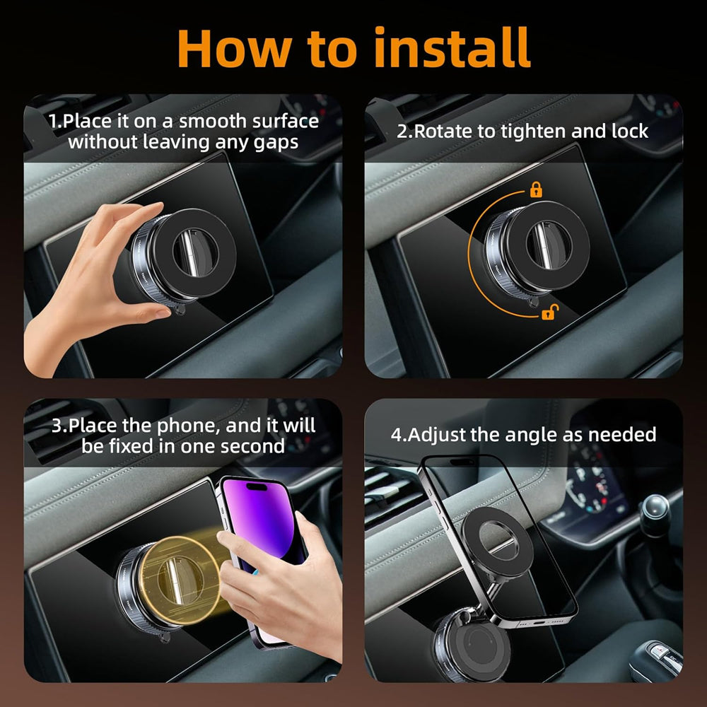 - Reinforced Suction & Twist-Lock Stability – Heavy-duty vacuum suction with a twist-lock design delivers exceptional stability on rough roads, sudden braking, and sharp turns. One-hand, 1-second installation fits most car dashboards and windshields.