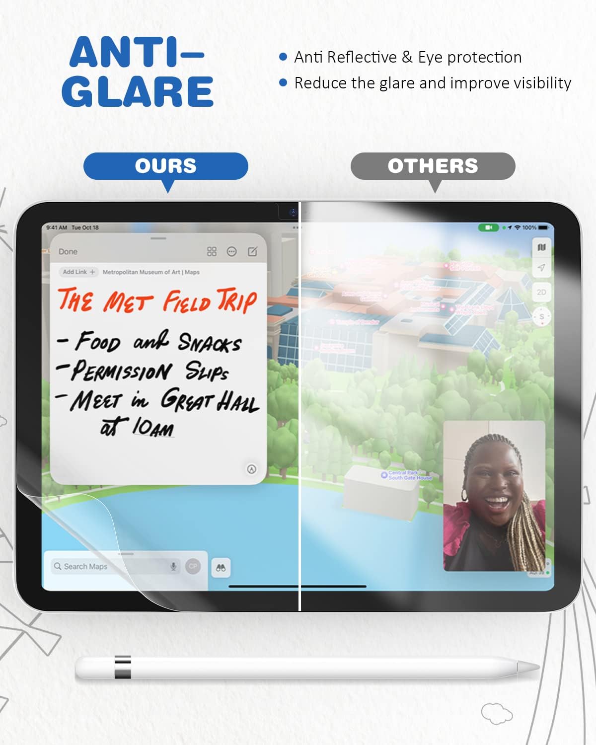 The Paper film Screen Protector for the iPad 10.9" (2022) and iPad 11th Gen 11", is ideal for artists and designers. It enhances drawing and writing by providing a smooth, matte surface that reduces glare and blocks distracting light, making your creative work more precise and comfortable.