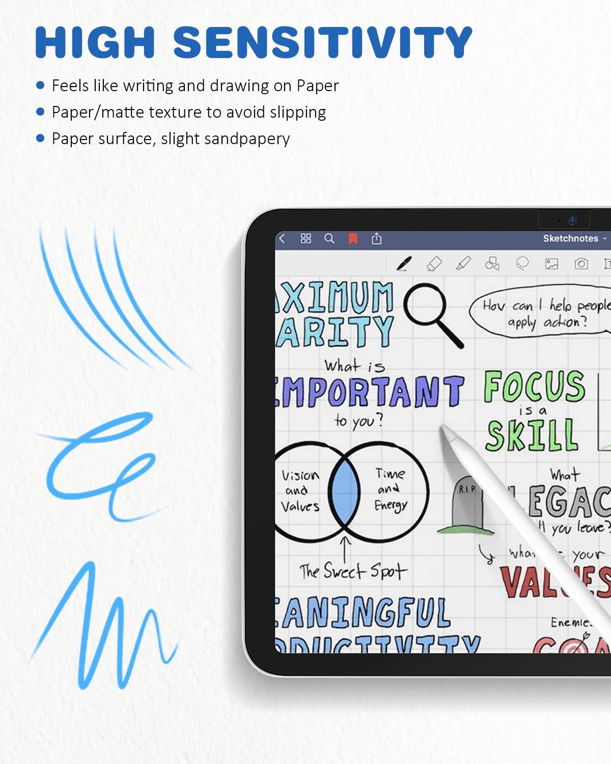 - Like Putting Pen to Paper: Specially-treated surface accurately simulates the feeling of writing and drawing on paper.
